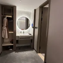 很滿意的入住體驗,大廳很大,環境很好,前台服務好,辦理入住快,房間設施齊全,很不錯!房間空間大,採光好,明亮,設施齊全,出行也很方便,距離地鐵站很近,退房時會問房間入住體驗,還會送礦泉水,入住感覺很不錯推薦