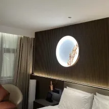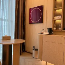 預訂這家酒店入住一晚,首先進入大堂辦理入住,給人營造很好的氛圍,先會倒一杯茶水,入住辦理期間也講述了我預訂的房間,訂的是一間內景窗不對外的,前台幫忙升級了房型, 入住辦理的很流程很快, 辦理完入住耐心的講解房卡與取電卡, 在去往電梯的途中也是工作人員帶往的,期間也講述了電梯使用方法。 進入房間 ,房間內景特別好看, 還有大的貴妃沙發, 洗漱用品應有盡有。 房間內也散發著陣陣的清香, 這個真的讓人感覺很棒, 房間內的飲料、水都是免費的,有任何需要都可以聯繫前台, 外賣都是前台員工幫忙送上來,雖沒有機器人但是服務很周到。 入住體驗:超級棒,周圍交通很便利,這家酒店附近也有很多吃的餐館,反正就是吃喝遊玩都方便。 服務超級的好,很貼心 。 入住到退房都是讓人感覺特別舒適。 大堂裝修風格很特別,背景牆上陳列着一排排的酒, 看上去真的很豪華大氣, 連吊燈都是那麼的特別。 總體很好,也很推薦入住這家酒店,從辦理入住的服務,還有中間有需求溝通中的服務,到退房的服務,衹能用一個字形容“棒”👍, 下次來南京還是會選擇這裏!!!!