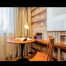 從智能大床房換到了高級大床房,房間的佈局是基本一致的,衹不過是沒有大窗了和小度了,床也會小一些。 提個建議:書桌旁的插座上預先插了一些設備,可能會導致住客自己的設備沒地方插了,也不知道能不能拔,如果能標記一下插的是啥就更好了。