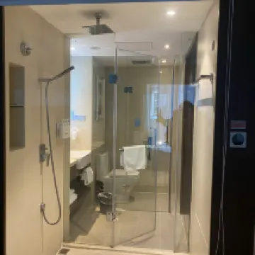 離地鐵口並不是那麼近,而且地鐵的電梯又很少,所以不要想着拖行李箱上下地鐵了。房間空調最高衹能到24℃,喊了維修工調整了也不行,不如前幾天住的亞朵或者全季。更要吐槽的是洗手間,很大,但不知道為何做成全透明,貼了一半的磨砂玻璃紙,也還是毫無私隱保護,非常不方便。服務還行,隨叫隨到。
