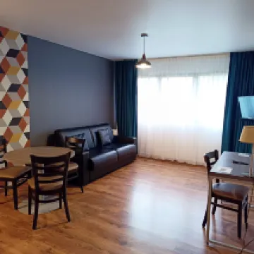 Апарт-отель находится на отшибе Нанта, от ближайшей станции трамвая (из центра ехать около 20 минут) еще 15 минут пешком. Номера большие (гостиная плюс спальня), отлично укомплектованные. Внешне корпуса требуют косметического ремонта, но внутри все в состоянии, близком к идеальному.