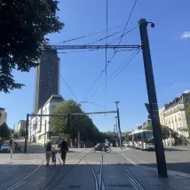 Simplement au milieu de tout, venu pour un mariage, mairie a 5min , niquel pour la marche avec des talons haut. Église de l’autre côté à 5 min aussi, et terrasse de café au milieu.
