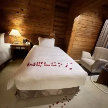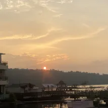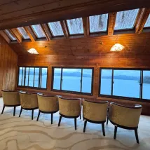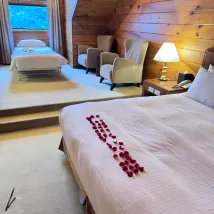 就在碼頭湖畔旁! 木屋飯店~房間地板有些凹陷! 廁所都有翻新很乾淨~ 但整體維持的還不錯~ 服務人員態度很親切 餐廳有大面湖景景觀 隔岸觀看水社音樂花火 視野很棒 推推