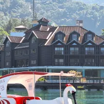 日月潭就在酒店伸手可釣魚的地方,依達掃碼頭就在旁邊、酒店內裝全是檜木、天然香氣十足、纜車站及商業區都在走路10分鐘的短程內