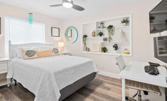 Second Bedroom: Queen-sized bed and a shared bath. The shared bath is smaller but has a shower with a rain showerhead and all the necessities!