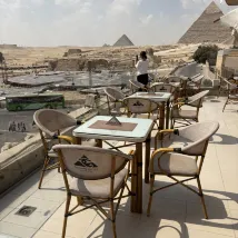 地理位置絕佳,正對著金字塔建築群入口。從餐廳露臺可以欣賞到金字塔和獅身人面像的壯麗景色。 房間還不錯,但隔音效果不太好。 早餐一般。 員工非常友善熱情,樂於助人。 總之,我們對這次入住非常滿意。酒店位置和景色都令人嘆為觀止。
