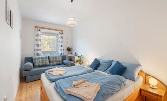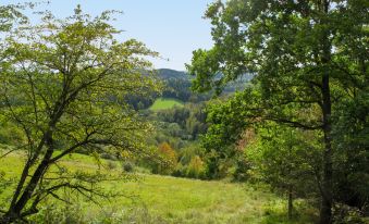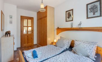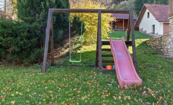Kralovice 8 km from Prachatice: Very beautiful semi-detached house "Kralovice", 2 storeys, built in 2002. In the resort, in a quiet, sunny position, 700 m from the lake. Private: property 600 m2 with lawn, pond. Terrace, garden furniture, barbecue, barbecue house, children's playground (swing). In the complex: WiFi, sauna (extra). Hot tub (extra). Parking (for 2 cars) at the house. Shop 4 km, grocery 4 km, supermarket 10 km, restaurant 6 km, café 8 km, bus stop "Nebahovy, Šandův mlýn" 1.8 km, railway station "Prachatice" 9 km, grass beach 700 m, indoor swimming pool 10 km. Sports harbour 50 km, sailing school 50 km, tennis 10 km, indoor tennis centre 10 km, sports centre 10 km, walking paths from the house 200 m, cycle lane 3 km, ski lift 16 km, chair lift 48 km, slopes 16 km, cross country ski track 16 km. Nearby attractions: Prachatice 10 km, Husinec 16 km, Netolice, archeopark 18 km, zámek Kratochvíle 21 km, zámek Hluboká nad Vltavou, Český Krumlov, České Budějovice 40 km. Well-known ski regions can easily be reached: Libín 16 km, Zadov-Churáňov 48 km. Well-known lakes can easily be reached: Lipno 50 km. Hiking paths: Boubínský prales, Šumava 30 km. Groups of teenagers on request only. An outdoor sauna with a relaxation area (on request for a fee) is located outside, 1 km from the property. 4-room semi-detached house 120 m2. Very comfortable and beautiful furnishings: living room with 1 double sofabed, dining nook, TV and radio. Exit to the balcony. 1 room with 1 double sofabed (140 cm), 1 double bed. Kitchenette (4 hot plates, oven, dishwasher, kettle, microwave, freezer). Bathroom, sep. WC. On the lower ground floor: sep. WC, hydro massage bath, Sauna. Upper floor: living room with 1 double sofabed and dining nook. Exit to the balcony. 1 room with 1 double bed and 1 folding bed. Kitchenette (4 hot plates, oven, kettle). Shower, sep. WC. Heating. 2 balconies, terrace. Terrace furniture. Very beautiful panoramic view of the countryside. Facilities: washing machine, sauna, children's high chair, baby cot. Internet (WiFi, free). Please note: suitable for families. Non-smoking house. Private entrance.