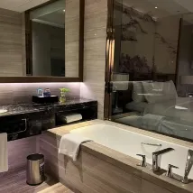 服務不錯 廖麗服務貼心,整個酒店服務人態度都不錯,房間安排的也是自己要求的,酒店有一次性泡澡袋,面積也比較大,電視能投屏就好了,中餐廳的菜品也不錯,酒店屬於新城區,所以比較繁華 對面的萬達廣場很成熟。我們坐高鐵的 打車大概15分鐘吧。這次入住還是很滿意 有機會來的話還是會選擇