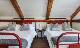 - 5 comfy beds that easily sleep 10 people (with an additional crib and sleeping options available upon request)