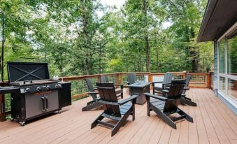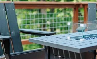 - 圍繞燃氣火坑的阿迪朗達克椅,可供您坐下來放鬆身心,欣賞美麗的樹林景色和相鄰雙池塘之一的季節性景色