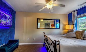 Second bedroom: Custom floating king bed with Nova memory foam mattress and soft LED glow