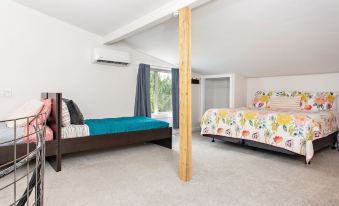 • Window A/C unit in each downstairs bedroom, mini-split A/C in loft bedroom that also cools the living room and kitchen