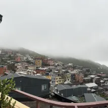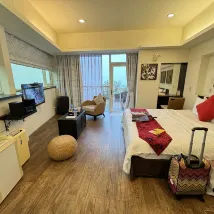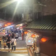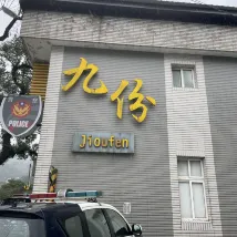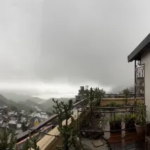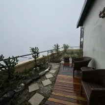 地理位置其實不錯,距離九份老街入口步行20公尺。房間是由兩間小房間改建而成,一個是乾廁,一個是濕廁。雖然有窗戶,但打開窗戶實際上是另一棟建築的牆。實際上,這棟建築非常古老,有點像木屋。我絕對不會再回到這家 Min Shu。