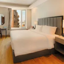乾淨整潔,面積夠大。有冰箱、微波爐、熱水壺,實用方便,還有早餐,很實惠👍前台接待也很棒!地理位置不錯。