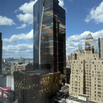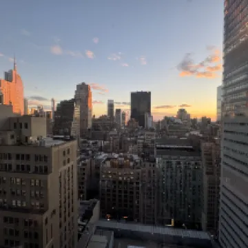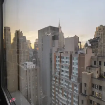 位於時代廣場附近第五大道42街,離地鐵走路也就5分鐘,對面就是target超市,出行特別方便,大堂在21層,下午4點後可入住,當天寄存行李免費;我們的房間在32層,是個轉角房,兩邊都有窗户,視野很好,房間乾淨,寬敞明亮,還有一箇中文接待員,很貼心。就是一樓的門口臉特別小,中間還有個柱子,但是進了裡邊,還是很寬闊的,打掃房間僅僅整理了床鋪,清理了垃圾桶,地上的頭髮沒有清理,沒有補充紙巾和捲紙。這點希望改進。