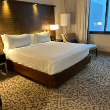 這是我住過的最差的希爾頓品牌酒店,沒有之一。 衞生:牆上好多污漬,排風口都是灰塵,包括吹風機的牌風口都是這種白乎乎的塵埃,地毯上還有上位客人的遺留物。 設施:電視機很大,但寫字桌上的枱燈是壞的 服務:打電話想反應這些問題,永遠無人接聽。最最最誇張的是分別在凌晨12點半和早上5:58分進行消防演習,警報器🚨發出的嗶嗶聲,完全沒有辦法睡覺。完全沒有事先通知,選的時間也正好是晚上睡得正香的時候。