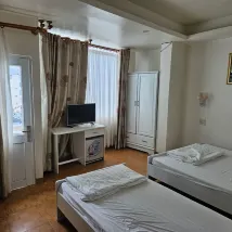 Отель расположен весьма удобно - недалеко от моря и множества кафе и ресторанов, в которых можно вкусно пообедать. В номерах отеля предоставляется wi-fi, горячая вода, телевизор, кондиционер - очень приятные условия, особенно учитывая стоимость.