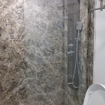 淋浴的水壓很大。浴室裡也有漂亮的現代裝潢。舒服的。