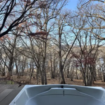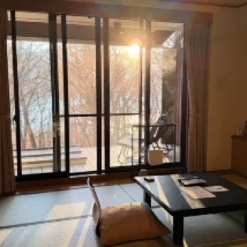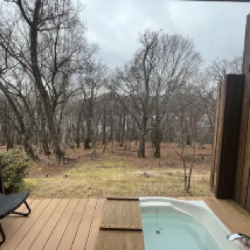 巴士站在路口,離酒店還有6分鐘步行上坡路。房間半露天風呂就是一個浴缸,沒有温泉,但可以洗澡或泡腳,但是因為直接面向樹林開敞所以要防蚊蟲和落葉之類,不過沒看到大型動物。每天服務員會把浴衣和洗漱用品、咖啡茶包等放到玄關,需要自己把要換掉的物品、垃圾都放在玄關讓其取走,他們是不進房間的。餐食新鮮,但是套餐份量不算太大,男士有可能不太夠吃。
