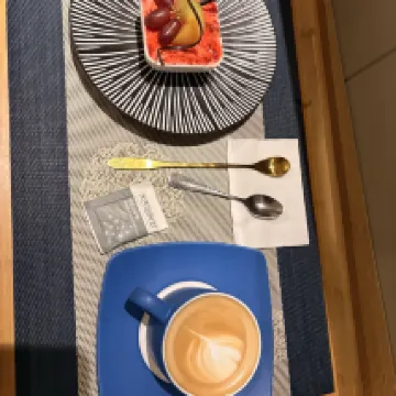 入住有一份下午茶和夜宵麪,但需主動申請,前台沒有提醒。衞生乾淨,服務總體不錯,滿足房客需求較及時。乾濕分離,洗、衞三區獨立非常好。早餐品種不多但能吃飽,麪還可以。