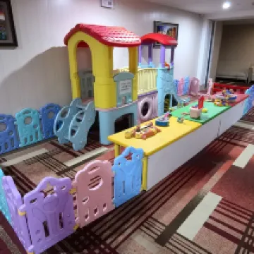 錯峯來寧波玩,當天到的比較晚,就想住在火車站附近,也不高興換酒店,就連住了好幾天。 地理位置沒得説,到的當天下雨,基本沒淋到雨就到了酒店,走的時候從酒店退房去火車站也是從從容容。 酒店出去打車也挺方便,走個兩三分鐘就是路邊。 再説房間,35平方的房間還是蠻大的,按摩椅也試過了,浴室的枱子很長,放東西很方便,完全可以兩個人一起。 最後説服務,一個是房間少桌子,酒店很快就送來了,另一個是有一天沒有早飯,我用下午茶換了早飯,都挺滿意。 酒店還有個小的小童樂園,小孩子可以玩一玩。早餐有飲品機,和機器人煮麪機。服務還蠻用心的。 不錯的選擇。