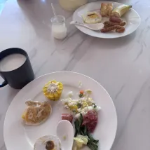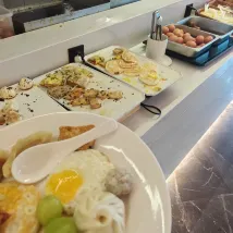 環境:安靜,整潔,隔音效果還挺好的,最nice的是房間的恆温壺,簡直為帶娃的寶媽量身定做,可以直接泡neinei給寶寶喝。當然,三樓的寶寶遊戲房也很好,寶寶玩得很開心~ 服務:必須滿分💯呀,態度很好,半夜遇到寶寶把被套弄臟了聯繫前台竟然可以換,意想不到😃~ 食物:半夜有粥和小麪包吃,當然早餐選擇性很多,也很美味😋 總的來説,是一次很滿意的住宿體驗。贊贊贊👍