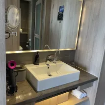 服務蠻好的,備註了高樓層,給我安排17樓,晚上夜景不錯!可惜這個週末寧波太冷了。 戴森吹風機,直飲水很方便,投屏也很方便。 大堂暢飲阿拉比卡現磨咖啡:每天一杯,不錯。