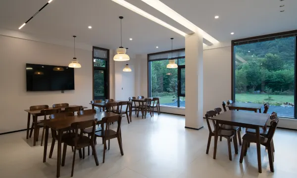 房間內乾淨整潔,新裝修半年左右,風格極簡。270度山景房,每個房間都是山景。