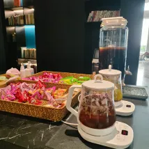 前台的服務很熱情,也很專業,酒店提供小零食咖啡,點心,甜湯,冰淇淋,聽説天氣再冷點會有烤紅薯,設施也是去年裝修的還可以,再次入住依舊是滿意的,主要是性價比高,這個價位還含早餐挺好的