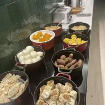 酒店的早餐在同等價位裏是比較豐富的,種類幾乎都有,簡單的一頓早飯過早,胃也比較舒服,環境和設施都滿分,前台的女生服務也很好,説話温柔,酒店還有小零食,冰淇淋,歡迎茶,甜湯等,入住可以免費停車,周邊出行也非常便捷,出門吃飯也方便