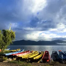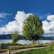 酒店門口很漂亮,帳篷露營椅度假感十足。位置在距離浪放碼頭30米的地方,交通便利,左走600米是很美的s灣,拍照很出片。這兩天天氣好,晚上還有觀星活動,肉眼可見滿天星星,孩子特別高興。民宿老闆很熱情,送了好喝的下午茶,還給我們升級了房間,服務可以説十分周到了!最後,瀘沽湖真的很美,不虛此行!