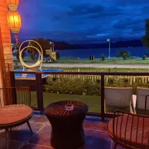 酒店前天兩個帥哥服務態度很好,有什麼問題跟他們溝通都會馬上處理,陽台就可以日出,離湖很近,走的時候還有免費的小禮品送,不錯的一次體驗,值得擁有,下次還來這家