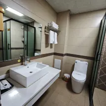 酒店衞生乾淨,前天小哥兩個隨時都解決問題,陽台可以看日出,看湖很漂亮,服務態度很好,不錯的一次體驗