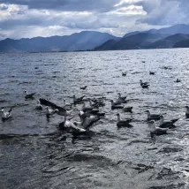 酒店位置太好了,停車方便,院子裏有停車的地方,小院大概能停七八輛車。酒店的這個陽台真的很棒,從陽台出門走幾步就到湖邊,早上在房間就可以看到日出,可惜我們去的這兩天天氣都不好,日出都被雲遮住了。從酒店正門出去走幾步就有好多吃飯的店鋪,蒸汽石鍋魚也很好吃。整體給人的感覺很棒,瀘沽湖簡直讓人心曠神怡,下次還來。