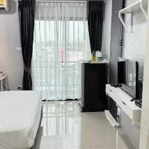 房間很乾淨,簡單但看起來不錯。冰箱、電視、辦公桌、衣櫃等設施齊全。床很軟,睡起來很舒服。還有擺成小天鵝形狀的毛巾,更令人印象深刻。 位置還不錯。距離 MRT 暖武里府市政中心站等交通樞紐不遠。和衛生部 出遊非常方便 接待人員很有禮貌,服務24小時,有免費私人停車場,無線網路速度快,覆蓋好。