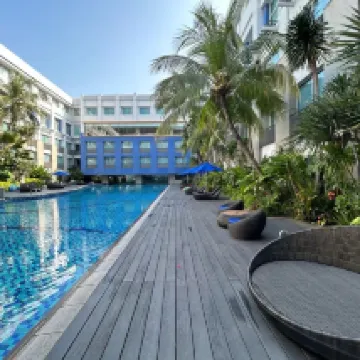 地理位置優越,靠近 Mangga Dua 購物中心,早餐非常美味,游泳池也很漂亮,豪華大床房也很寬敞。
