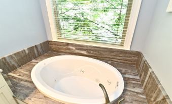 One bedroom on this floor has a vaulted ceiling and large picture windows, one of which overlooks the pool. This bedroom`s private bathroom has a huge stand up shower with dual shower heads and a double vanity - perfect for a couple! The second bedroom on this floor has a vaulted ceiling as well, while the private bath for this bedroom has a garden tub and shower combo.