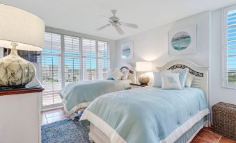 The second bedroom has two twin size beds that can be moved together for any couple that wants to snuggle or can be separated for the guests who are singles. There is also a private lanai for the second bedroom with an eastern and panoramic northern view of a marina and the channels. All of the furnishings are also brand new.