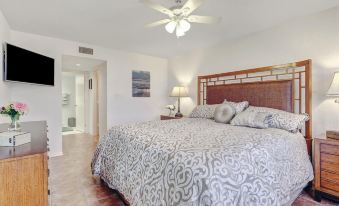 The master bedroom has a brand new Tommy Bahama Lexington king size bedroom set and beautiful linens. The master bedroom opens up to the front lanai. There are walkin closets and newly furnished bathrooms. The kitchen area is also stylish and comfortable. All the accessories from home are included. It has a Keurig coffee maker, huge refrigerator and new Mikasa dishes.