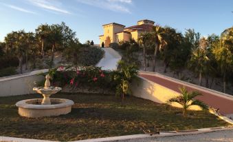 Entering the Grand Estate of Villa de Palmas is an enlightening experience as the Main Home is distinctively perched high on a hill that can be seen at a distance. Tasteful entry monuments establish your arrival from the private road followed by low decorative walls as you enter the property's interior circular driveway. Along the way, you're sure to notice our Earth-Friendly Solar Farm conspicuously nestled in a small valley of sorts alongside one of the estate's underground water sources. Compliments to our Sun which provides all the electrical needs for the entire estate. In the center of the driveway is a Pineapple Fountain and pond adding to the tropical elegance.