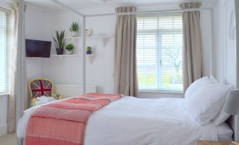 The Nook boasts boutique style accommodation with one spacious bedroom (with four poster king size bed, small sofa, TV etc), a shower room and fully equipped kitchen. There is no separate living room.