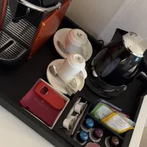 超舒適的飯店,華麗的房間!房間有膠囊咖啡機,水壺,茶,咖啡,水。有酒杯和冰箱,非常方便。房間有浴缸,沒有淋浴,還有品牌毛巾。房間的景色很普通。我沒吃早餐,一大早就出門了。我很樂意再次入住這家酒店!
