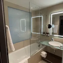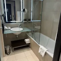 酒店員工態度服務親切,辦事效率高。房間有浴缸,整齊清潔,有咖啡機可飲膠囊咖啡。酒店早餐,自助餐形式,款式多,時常補充,非常好味。整體評語,讚。值得推薦。