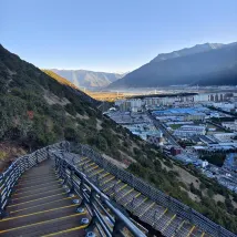 黃昏,金色的太陽灑落在林芝的街道上,推開酒店玻璃門,映入眼簾的是素雅的大堂,左手邊的前台內側,一位落落大方的知性美女向我們打來招呼,放眼望去那麼熟悉的面孔,似曾相識,一問得知遂寧老鄉。此刻,大堂裏的暖氣和美女的聲音一樣特別温暖,彷彿回到家一樣。辦理完入住後,我們隨着酒店的指引來到四樓的房間,打開房門室內的裝修特別温馨,窗簾被智能控制打開,窗邊的小桌上擺放着一株水養綠植和一套功夫茶具,站在房間望向窗外對面的山坡上,彩林顯得格外的漂亮,潔白的床單鋪設得如此的整潔乾淨,初入林芝,入住如此舒適的酒店,瞬間讓人心情特別舒暢。