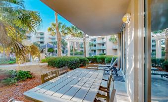 This beautiful ground floor unit has a wonderful view of Waterscape's tropical garden and oasis. The primary bedroom and living room open up to a large patio with outdoor seating. The condo's kitchen is well appointed with granite countertops, stainless steel appliances, and beautifully tiled floors. All dishes, cooking utensils, and bake ware are provided to complete and serve meals. This lovely home offers a twin bunk area, full bath with a stand-up shower, and a washer/dryer off of the kitchen. The open living room houses a queen sofa bed, TV, and DVD player. The primary bedroom features a king bed, private bath with stand up shower and garden tub, TV, DVD player, and walk-in closet. This condo offers wider door frames, shower bars, pedestal sinks, and lower countertops.