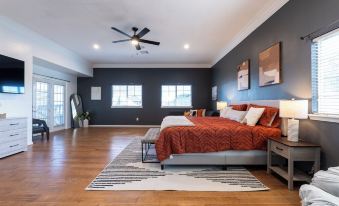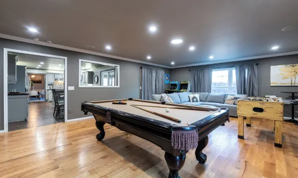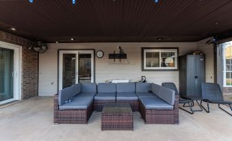 This cozy, contemporary 4,100 SQ FT Villa is located next to Gaillardia Country Club in the heart of OKC, next to some of the best restaurants/bars in the city. The home features THREE KING BEDS, SIX BUNK BEDS, A HEATED SWIMMING POOL, HOT TUB, POOL TABLE, FOOSBALL TABLE, BASKETBALL COURT, HORSESHOE and enough dining and sleeping quarters to accommodate 16+ guests! With FIVE bedrooms and loaded kitchen amenities, this is the perfect home base to host your next family getaway! Soak in the beautiful sunset views of Gaillardia Country Club with this hidden OKC gem!About pets:Pets allowed: dogs less than 50 lbs per pet (limit 2 pets total).We have a standard pet fee of $150 per dog..About checkOut:Check out before 11:00 AM.About children:Children allowed: ages 0-17.For safety, keep back doors locked at all times!.About customRules:Please note there is only parking for up to 4 vehicles. HOA regulations prohibit street parking for this property. Please arrange rideshare in advance.The pool/hot tub are open from 4/15-12/15 and can be heated for $48/night for the length of your stay. Both are closed during the OKC winter weather.,There is a $2000 charge for all public nuisance complaints and/or if the police are called for not respecting our quiet hours between 9pm - 8am..About checkIn:Check in after 4:00 PM.About smoking:Smoking allowed: in designated areas.Smoking inside will incur a $500 sanitization fee..About minBookingAge:Minimum age to rent: 25.About events:Events allowed: family gatherings and birthday parties.Maximum event attendees: 20,There is a $300 fee for bookings w/ over 16 guests.