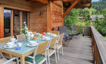 Villars: Very beautiful chalet "Khamariah", 3 storeys, built in 2005, surrounded by trees and meadows. In the district of Domaine de La Residence, 1.6 km from the centre, in a quiet, sunny position in the residential district, 180 m from the skiing area, south facing position. Private: large garden (not fenced) with lawn and wildlife garden. Terrace, garden furniture. In the house: storage room for skis, central heating system, washing machine, tumble dryer. Motor access to the house. In Winter: please take snow chains. Parking (for 2 cars), single garage. Shop 1.7 km, grocery 800 m, restaurant, bakery 1 km, bus stop "Chesières" 1.6 km, railway station "Villars-Bretaye" 2.6 km, indoor swimming pool 1.9 km, thermal baths "Lavey-les-Bains" 19 km. Sports harbour 25 km, golf course (18 hole) 7 km, indoor tennis centre 2.7 km, sports centre 2.7 km, mountain railway 2.6 km, ski lift 2.2 km, gondola lift 800 m, ski school 2.6 km, children's ski school 2.7 km, ice rink 1.9 km, children's playground 2.8 km. Free ski bus service to the ski region Villars. "Khamariah", 5-room chalet 200 m2 on 3 levels, south facing position. Spacious, beautiful and luxurious furnishings: entrance hall. Raclette grill, fondue Set (cheese)). Sep. WC. On the lower ground floor: 1 double bedroom with 1 french bed. Exit to the garden. 1 room with 2 beds (90 cm). Exit to the garden. 1 double bedroom with 1 french bed (2 x 90 cm), shower/WC. Exit to the garden. Bath/WC. Upper floor: large living/dining room with open-hearth fireplace. Exit to the balcony. Small lounge with satellite TV, hi-fi system and DVD. Kitchen (4 hot plates, oven, dishwasher, microwave, freezer, electric coffee machine, Capsules for coffee machine (NESPRESSO) extra). 2nd upper floor: 1 large room with 1 french bed (1 x 190 cm, length 200 cm), bath/shower/WC and double hand-basin. Exit to the balcony. Large balcony, south facing position, small balcony, south facing position, large garden. Terrace furniture, barbecue (portable). Very beautiful panoramic view of the mountains. Facilities: washing machine, dryer. Internet (WiFi, free). Parking (roofed, 2 cars). Please note: non-smokers only.