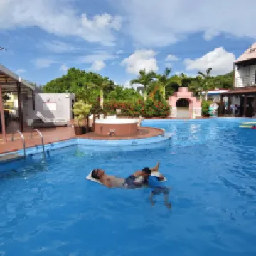 酒店泳池很好提供很多小朋友水泡及浮床,池邊有淡水沖身的設施,方便去完沙灘可以沖走身上的沙子;酒店的貨櫃屋可以容納一家五口,有洗衣乾衣設備有廚房有廚具夠家庭的使用。