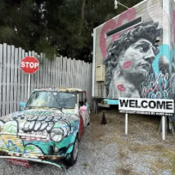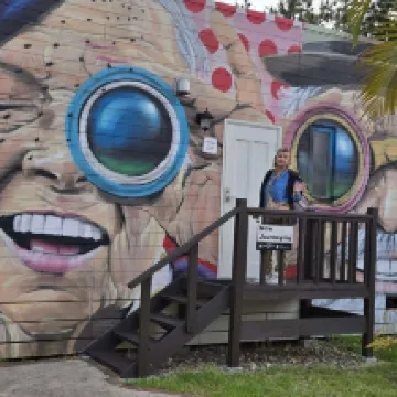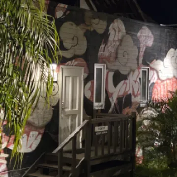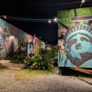 不幸的是,浴缸的排水很差,我在使用時不得不關掉淋浴。游泳池可以免費租用浮環和沙灘球。貨櫃小屋的牆壁藝術看起來很棒。