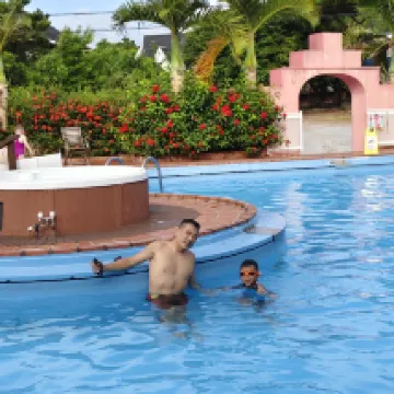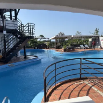 還可以,床有點小,但泳池不錯放鬆,服務人員也很友善,但乾淨程度就還好